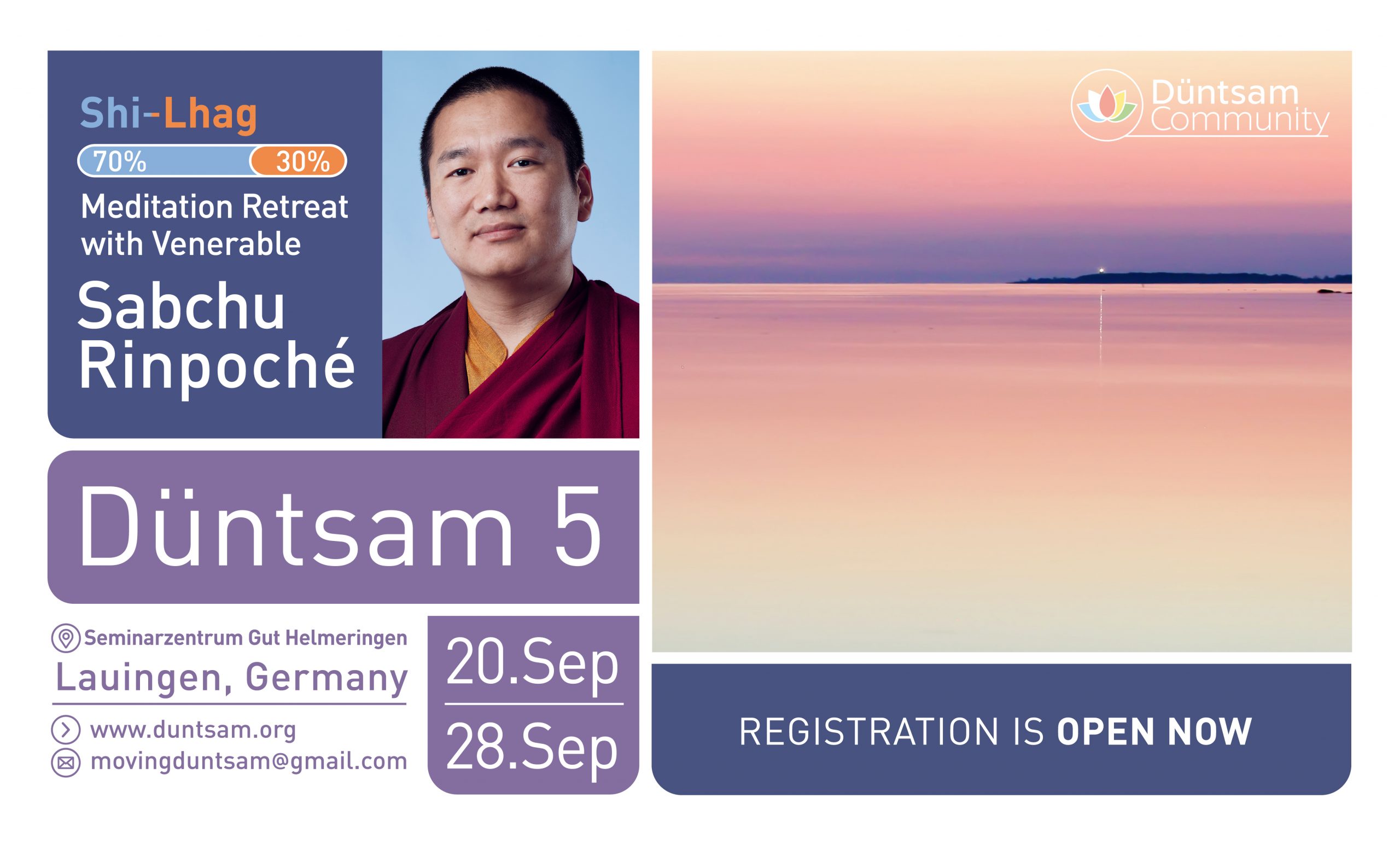 🇩🇪 Wir haben das wunderbare Vergnügen für dieses Jahr gleich zwei Düntsam-Retreats mit Sabchu Rinpoché ankündigen zu dürfen.🇬🇧 We have the wonderful pleasure to announce two Düntsam retreats with Sabchu Rinpoché in Germany this year.